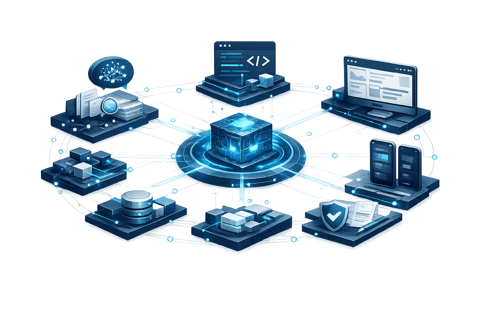 We build AI-powered products with deep LLM and RAG integration — from AI assistants and knowledge systems to scalable web, mobile, and cloud platforms.